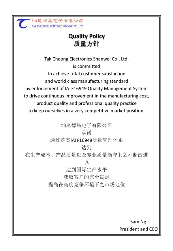 Tak Cheong Electronics (Holdings) Co.,Ltd.